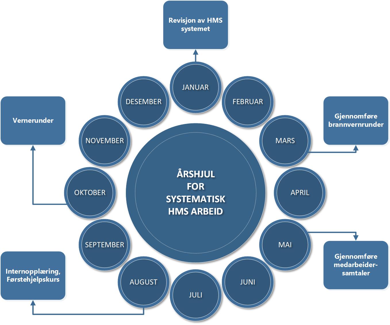 Andre aktiviteter kan jo være personalmøter, møtestruktur for oppfølging av årshjulet etc. og selvsagt tilpasses dette i forhold til både bransje, formål og organisasjonens størrelse.