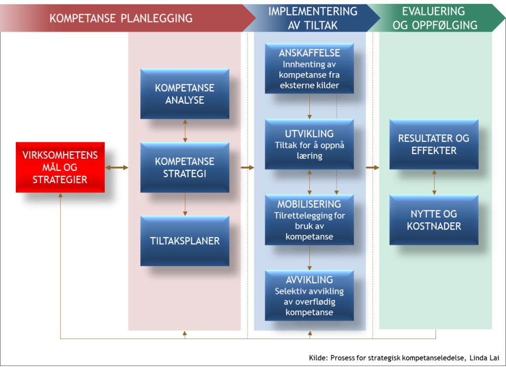 Professor Linda Lai definerer begrepet strategisk kompetanseledelse noe som innebærer planlegging, gjennomføring og evaluering av tiltak som sikrer at organisasjonen og den enkelte medarbeider har og benytter nødvendig kompetanse for å nå definerte mål. Videre at dette er en kontinuerlig prosess som springer ut fra virksomhetens mål og strategier. Vi mener dette er en særdeles viktig dimensjon i det å skape vekst gjennom HMS og den mulighetsarenaen det er for å lykkes med dette i en hektisk hverdag.